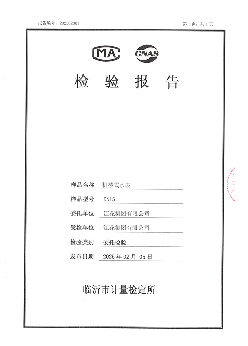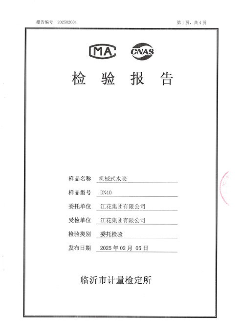 机械式水表检验报告DN40市