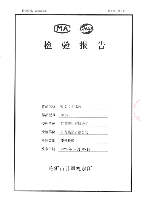 智能IC卡水表检验报告DN2